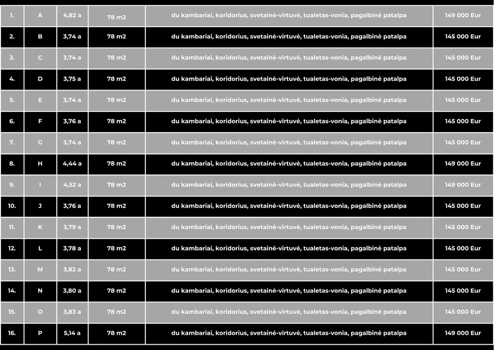 GYVENAMŲ NAMŲ KAINŲ LENTELĖ